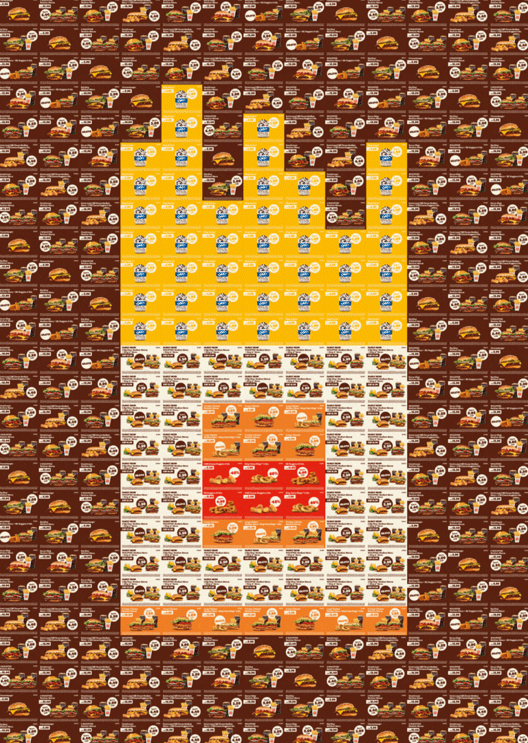 Mit dem „Coupon Coup“ verwandelten wir 926 originale Burger King Gutscheine in ein F12-Plakat. Das OOH wurde so selbst zum Coupon – Passant:innen konnten die Gutscheine direkt abreißen, mitnehmen und einlösen.