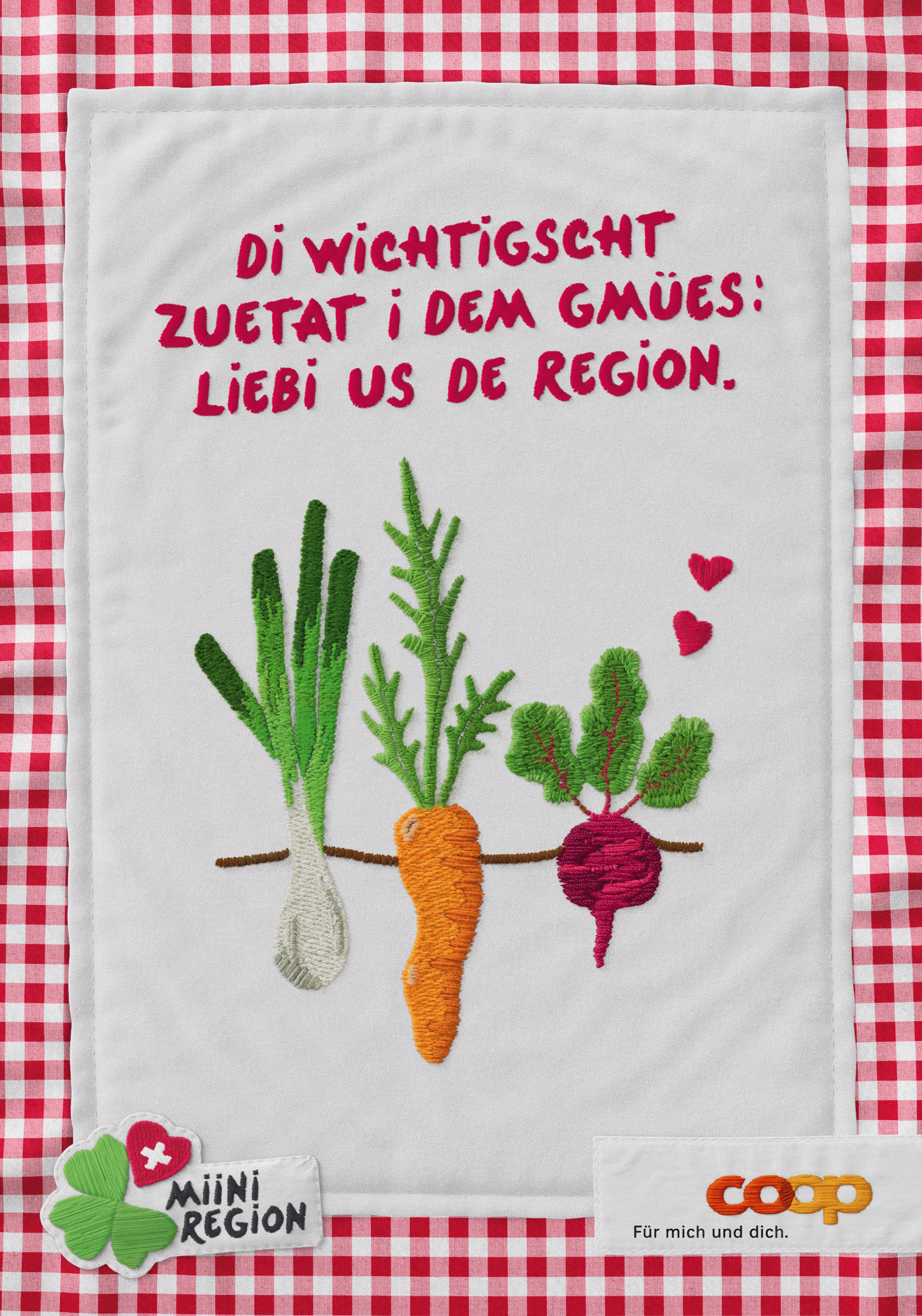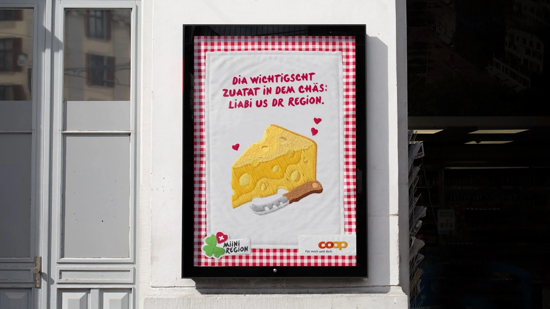 Zum 10-jährigen Jubiläum überarbeiteten wir den visuellen Auftritt von Miini Region. Um auf die lokale Verwurzelung zu verweisen und um mehr Bezug auf Swissness zu bringen, setzen wir die Kampagne im Stil traditioneller Schweizer Handwerkskunst, mit gesticken Motiven, um.